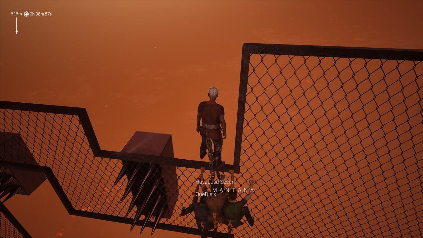 - Вы сможете спасти товарища, обмотав цепь вокруг платформы и подтянув его обратно;