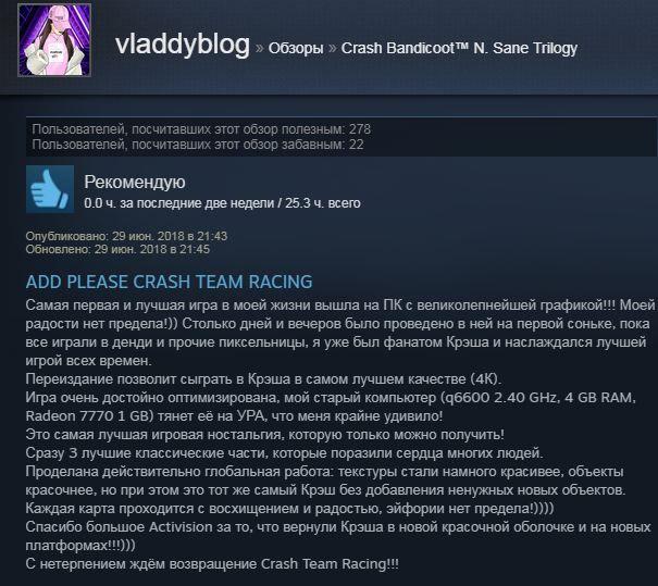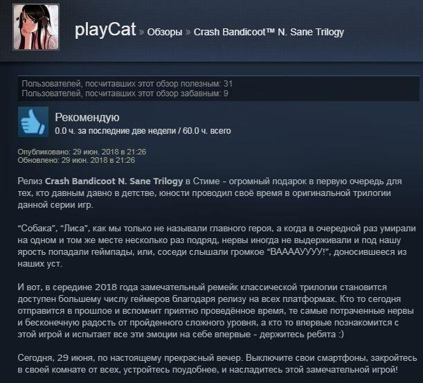 Отзывы об игре Crash Bandicoot N. Sane Trilogy: