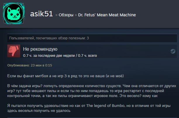 Dr. Fetus Mean Meat Machine – сочетание экшена и сложной логической игры в стиле three in line, действия которой происходят в безумной вселенной Мясного Пацана. Вмеси известный Доктор Фетус пытается разработать превосходного клона Мясного Пацана, однако прежде, он должен пройти через нелегкие испытания. Окажите поддержку профессору выполнить его зловещую мечту в реальность, пройдите все испытания по дороге к финалу. Придется экспериментировать и быть терпеливым, потому что пройти эту игру за короткое время не получится.