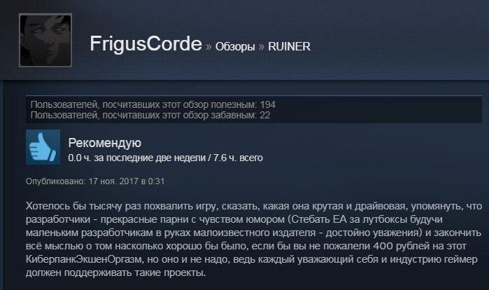 - Используйте все возможности будущего для борьбы с врагами. Множество кибернетическим имплантантов, масса умений и глубокая система прокачки - Ruiner идеально показывает, как должен выглядеть настоящий Shoot ’em up.