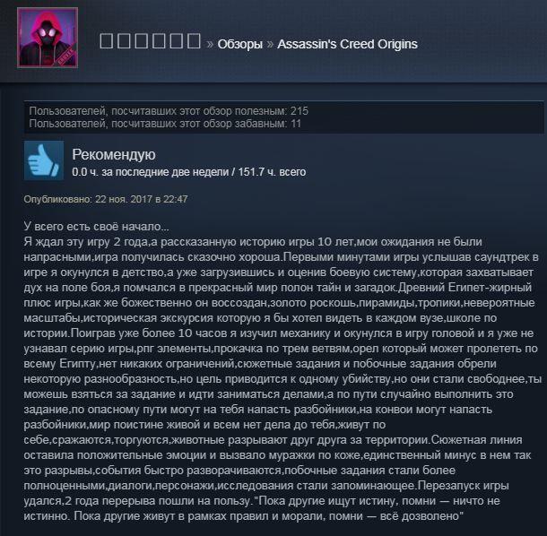Отзывы об игре Assassin's Creed: Origins:
