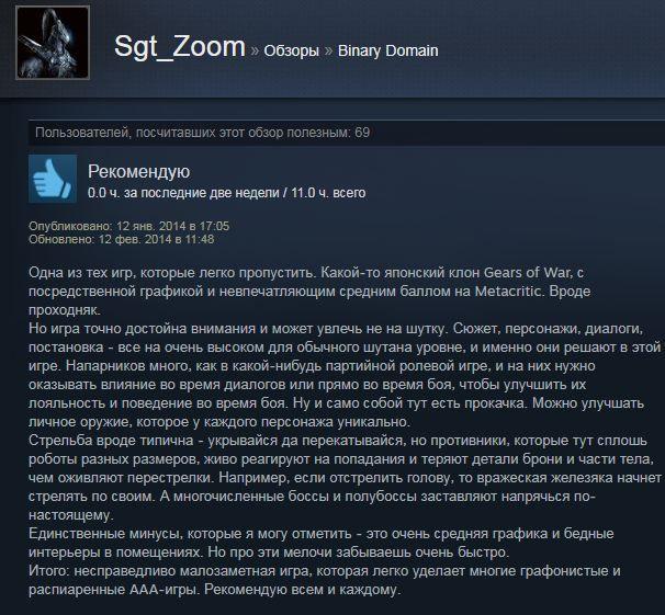 2080 год, на улицах Токио кровопролитная война - роботы сражаются с людьми, однако не все так просто и отряд элитных бойцов постепенно начинает замечать необычные явления в поведении противника. Встречайте Binary Domain, скачать которую на компьютер можно чуть ниже, тактический экшен, где авторы не только детально проработали боевую систему, но и подарили игрокам глубокий сюжет, задающий необычные вопросы.