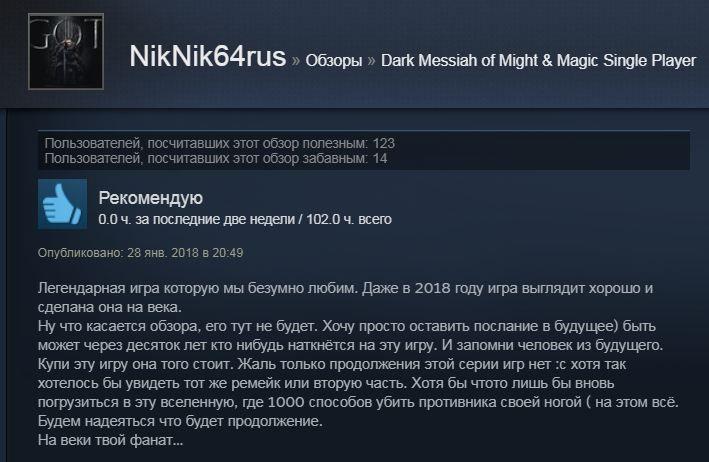 Отзывы об игре Dark Messiah of Might and Magic: