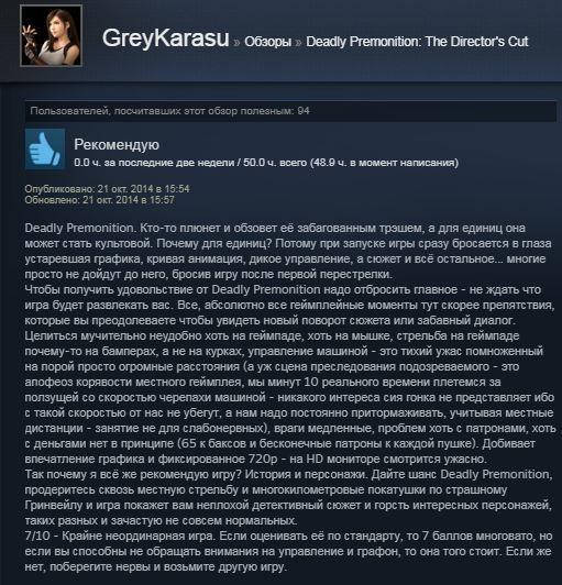 Отзывы об игре Deadly Premonition: Director's Cut: