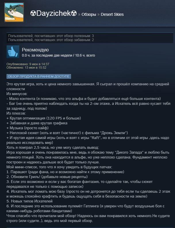 Игра Desert Skies предлагает отправиться в приключения по Дикому Западу, где для выживания придется заняться сбором ресурсов, поиском и использованием оружия, а также строительством. По некоторым данным, страшные твари надвигаются на регион, и люди покидают территорию. Постройте убежище, организуйте оборону и постарайтесь построить дирижабль. Здесь много опасностей и странных вещей, к которым нужно быть готовым.