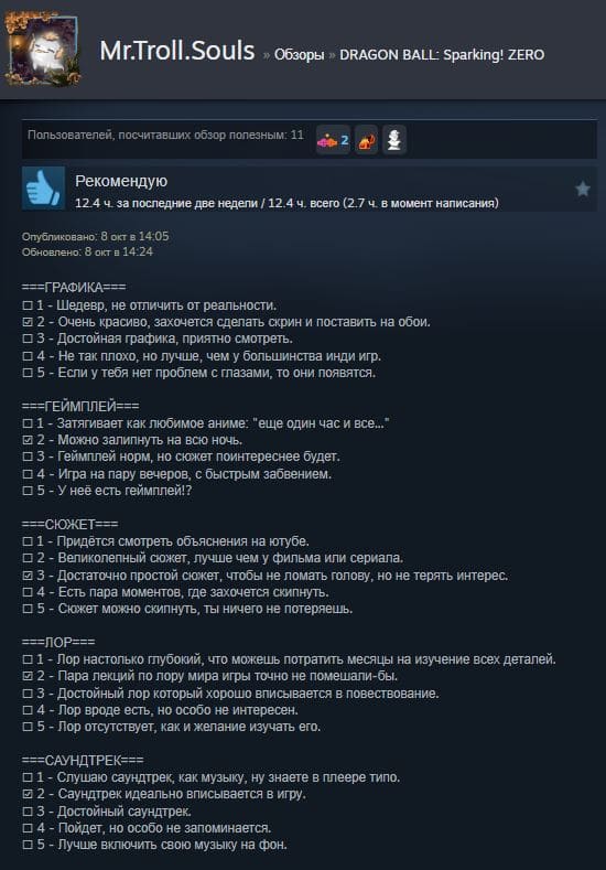 Отзывы об игре DRAGON BALL: Sparking! ZERO: