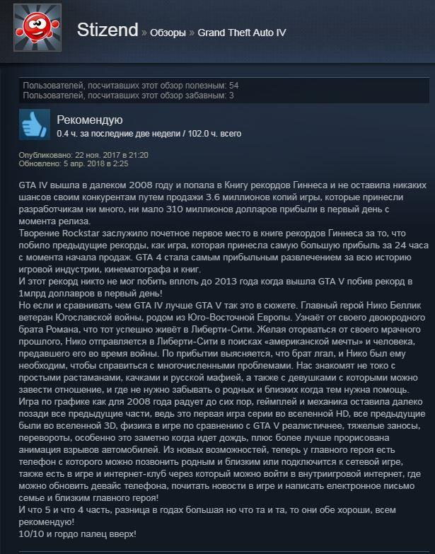 Отзывы об игре GTA 4: