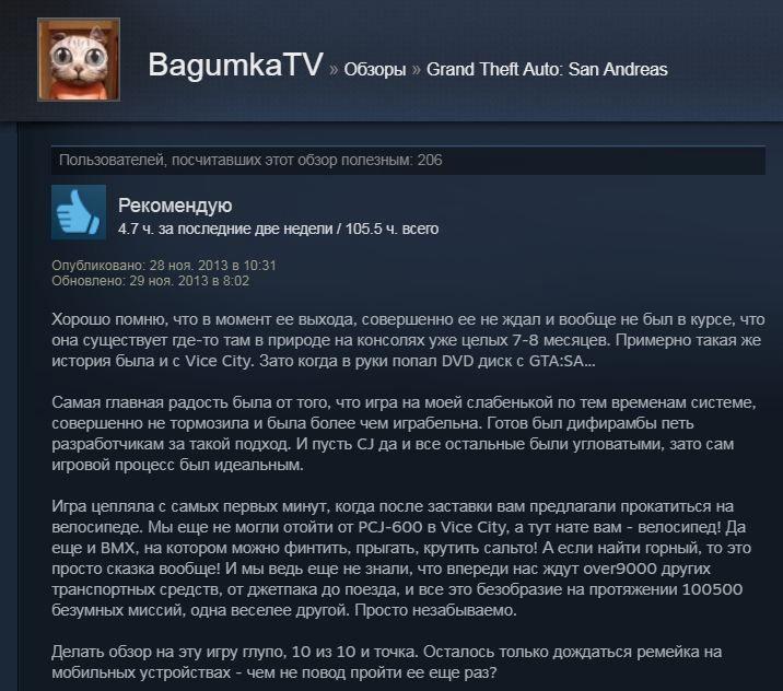 Отзывы об игре GTA San Andreas: