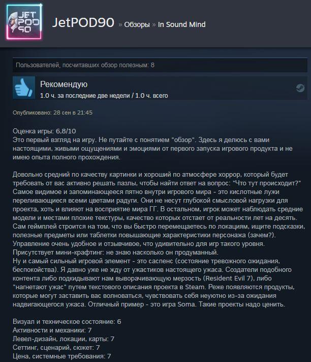 - In Sound Mind отличается качественной детализацией и реалистичными текстурами;