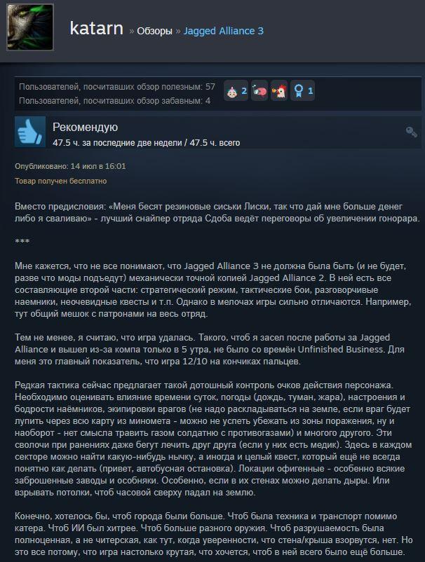 Отзывы об игре Jagged Alliance 3: