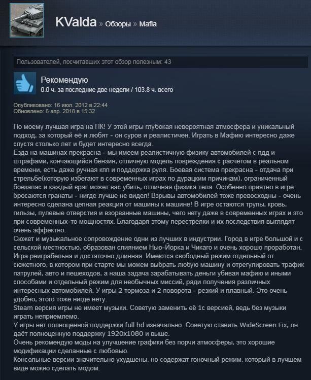 Отзывы об игре Mafia: The City of Lost Heaven: