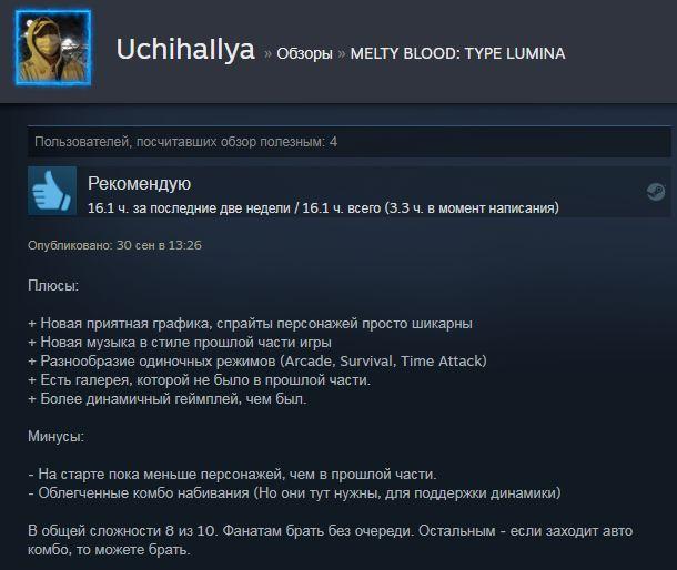 - Игровой процесс MELTY BLOOD: TYPE LUMINA разворачивается на просторных аренах, где вы будете сражаться, используя различные навыки, атаки и их комбинации;