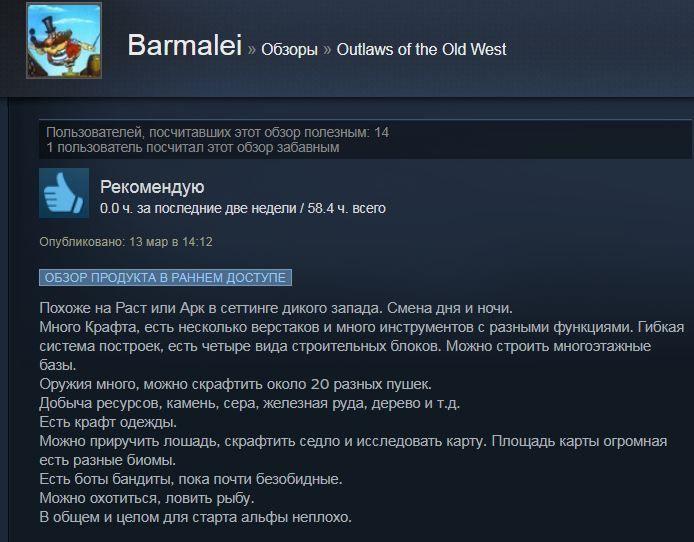Outlaws of the Old West - это еще одна песочница-выживалка, однако плюс в том, что авторы перенесли действие игры в весьма любопытную эпоху - Дикий Запад. Играйте в покер, стройте убежища, сражайтесь с другими игрока и пытайтесь выжить на неприветливой, но красивой локации.
