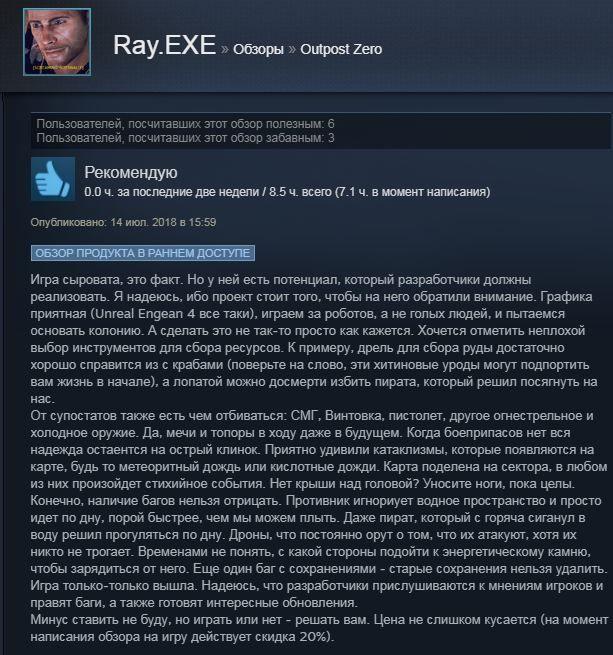 Научно фантастический проект в жанре выживания от первого лица, где пользователям предстоит отправиться на далекую планету и попробовать построить плацдарм для будущих колонистов. В Outpost Zero Земля находится на грани вымирания и полезных ресурсов практически не осталось. Многие корпорации начали отправлять экспедиции для исследования неизвестных планет и водной из них на планету Гайя отправили вас.