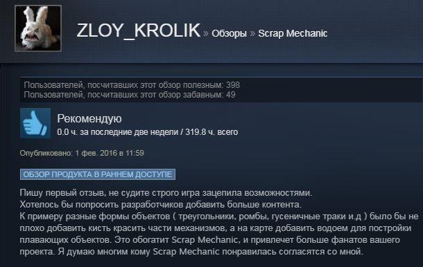 Отзывы об игре Scrap Mechanic: