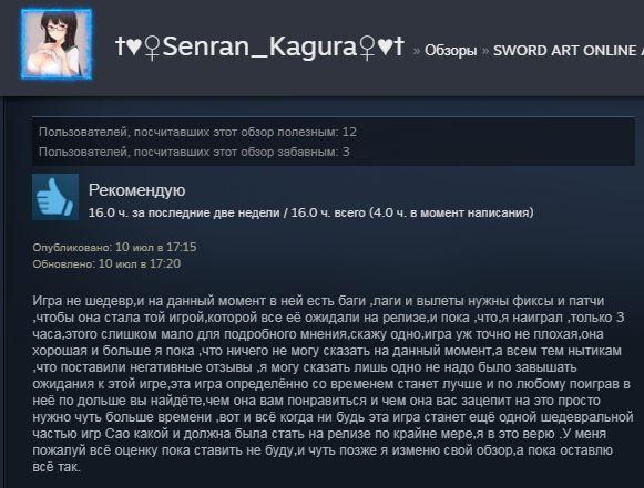 Отзывы об игре Sword Art Online: Alicization Lycoris: