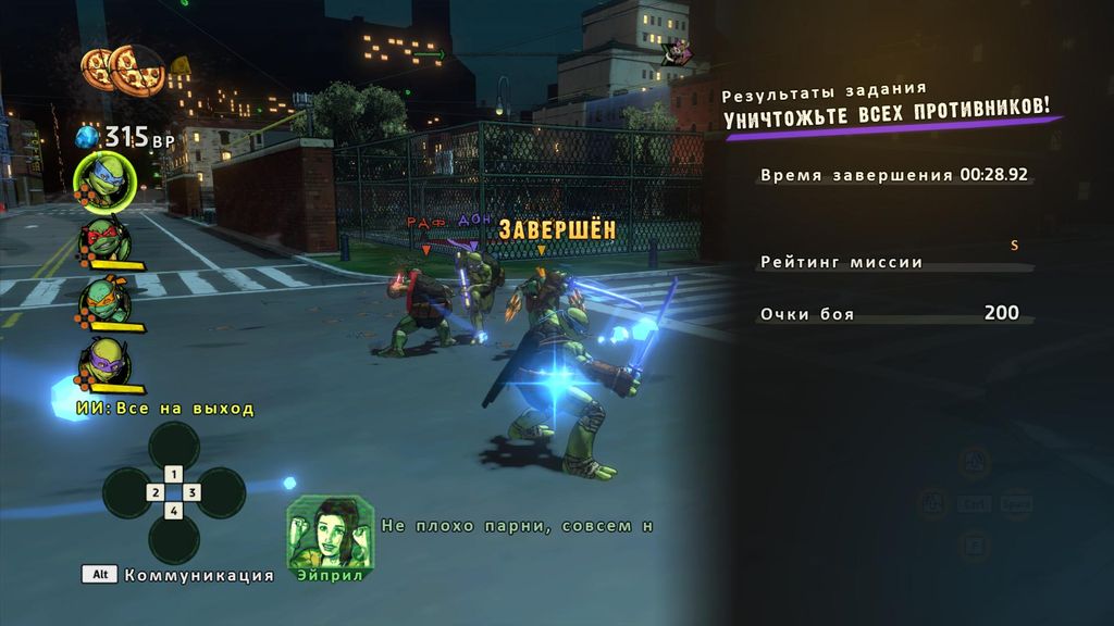 - Просто, но увлекательно. Каждый уровень можно переигрывать множество раз, ведь после боя Teenage Mutant Ninja Turtles: Mutants in Manhattan оценивает мастерство игрока и выдает оценку.