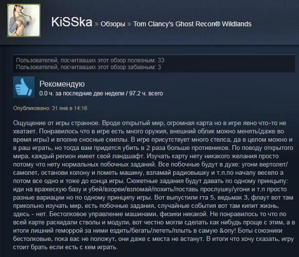 Отзывы об игре Tom Clancy's Ghost Recon Wildlands: