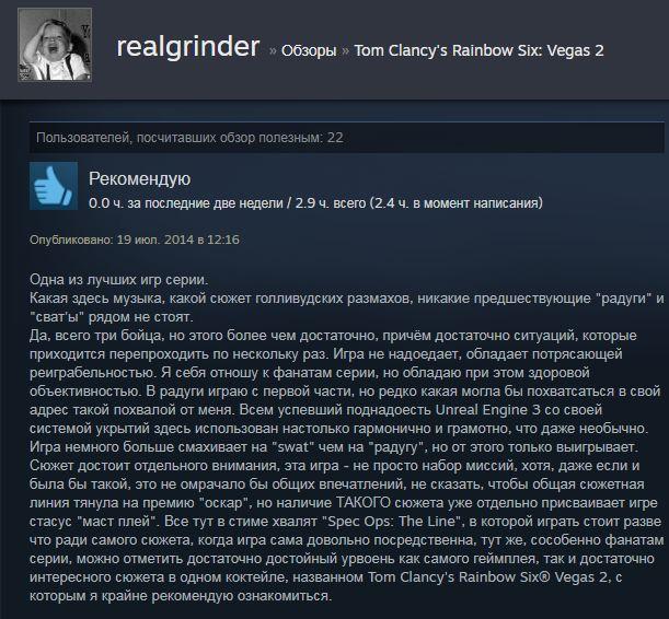 Отзывы об игре Tom Clancy's Rainbow Six: Vegas 2: