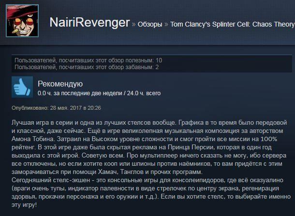 Отзывы об игре Tom Clancy's Splinter Cell Chaos Theory:
