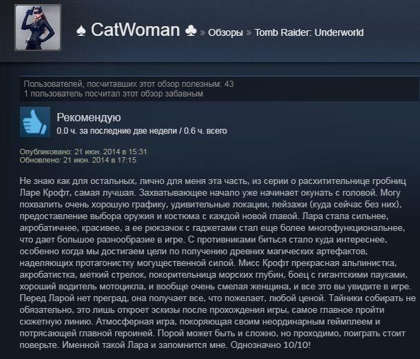 Отзывы об игре Tomb Raider: Underworld: