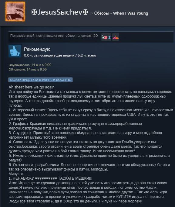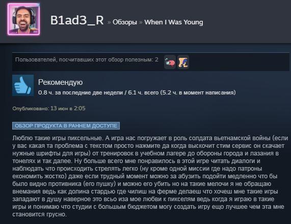 When I Was Young – хардкорная игра с видом сбоку и двухмерной графикой, события которой перенесут пользователей во Вьетнам, в период войны. Вам поручено сразится в самых невероятных столкновениях, пройти кампанию и познакомиться с уникальной для данного жанра боевой системой. Пользователи выступят в роли обычного американского парня, пытающегося отыскать своего брата, пропавшего без вести.