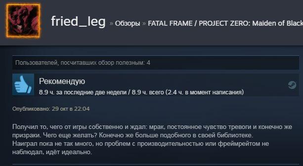 Отзывы об игре FATAL FRAME / PROJECT ZERO: Maiden of Black Water: