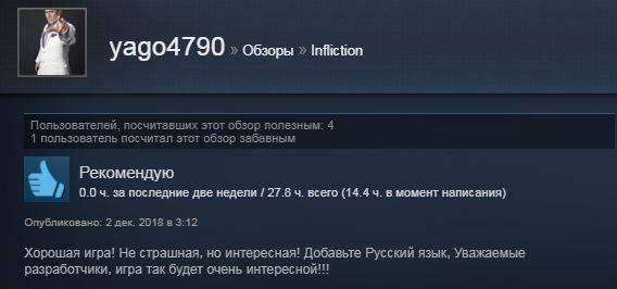 Infliction – хоррор, представленный в интерактивном стиле, где вам предстоит отправиться в роли главного героя в одно очень загадочное место – загородный особняк. Здесь происходило что-то неладное и местные до этих пор боятся говорить об этом. Вам необходимо разобраться с этим или попросту сбежать – выбор за вами. Страхом пропитан каждый объект в доме, а непревзойденная графика только усиливает их ощущение.