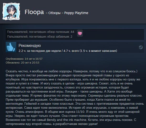 Poppy Playtime – хоррор-головоломка от первого лица, перемещающая пользователей на заброшенный завод по производству игрушек, где необходимо разобраться, почему бывшие собственники ушли. События происходят в корпорации Playtime, которая была достаточно известна и прославилась качественными детскими игрушками, но в один момент завод перестал работать. Никто не может понять, что произошло и куда все исчезло. Вы, как любознательный человек, отправитесь на фабрику и попытаетесь узнать о случившемся.