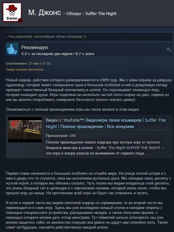 Suffer The Night – хоррор на выживание от 1-го лица, который заставит ваше сердце замирать от ужаса. Вас ждут незабываемые приключения в мрачном поселке Слипи Вудс, в конце 80-х годов. Вы остались дома в ожидании шторма, и внезапно обнаружили некий конверт с игрой на пороге. Инди-разработчики создали уникальную атмосферу, которая передает ностальгические эмоции и вызывает неподдельный страх.