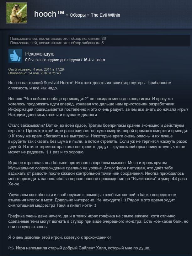 The Evil Within - это новый проект одного из создателей культовой серии Resident Evil, Синдзи Миками. После запуска игры, сразу узнается почерк геймдизайнера, начиная от поведения камеры и заканчивая мелкими геймплейными моментами. Примите участие в жуткой истории детектива Себастьяна Кастелланоса, который попал в жуткий и странный мир, наполненный ужасными монстрами и таинственным злодеем, скрывающим лицо за капюшоном.