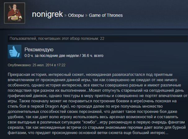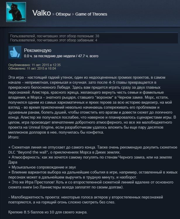 Отзывы об игре Game of Thrones: A Telltale Games Series:
