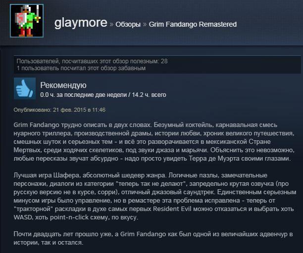 Grim Fandango Remastered - это великолепный подарок каждому любителю классических игр, скачать этот квест на компьютер мы рекомендуем не только всем поклонникам жанра, но и игрокам, желающим прикоснуться к временам, когда индустрия видеоигр была совсем другой.