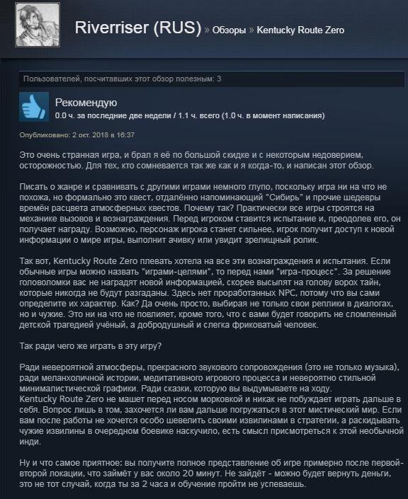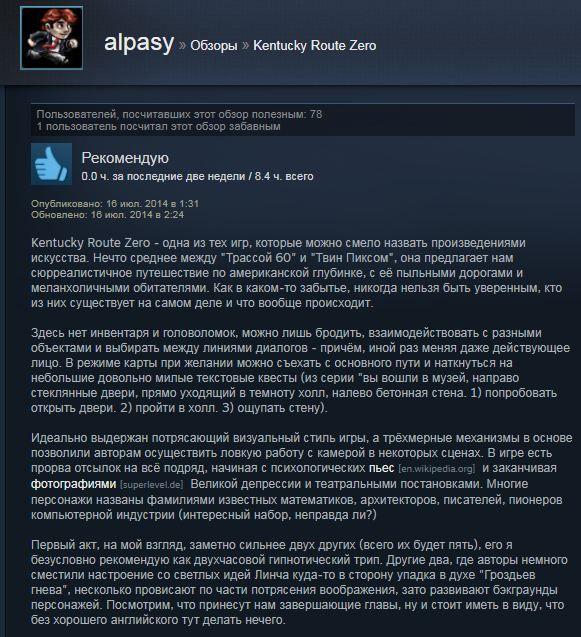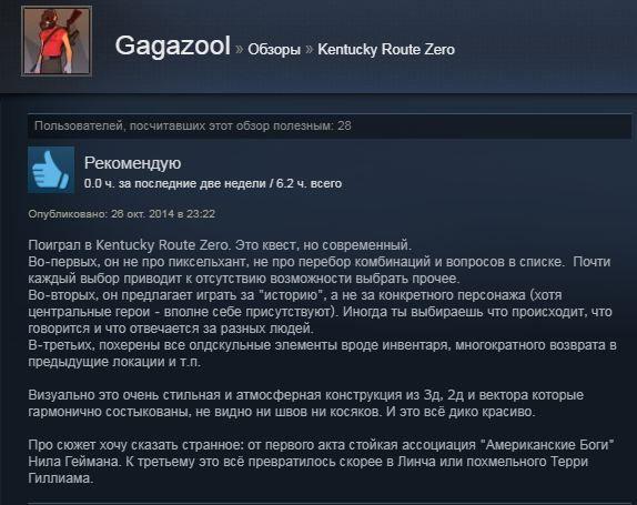 Kentucky Route Zero – приключенческий проект, представленный в жанре инди-игры, действия которой происходят с видом сбоку. Игрокам предстоит отправиться в уникальное путешествие по подземному шоссе, где необходимо отыскать ответы на вопросы протагониста. Действия происходят в штате Кентукки, где под землей разместились пещеры и скрытая от глаз трасса. Не каждый может сюда попасть, но главному герою повезло, тем самым он сможет изучить место, увидеть здешних жителей и получить ответы на некоторые вопросы.