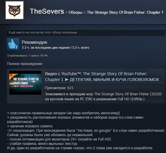 Отзывы об игре The Strange Story Of Brian Fisher: Chapter 1:
