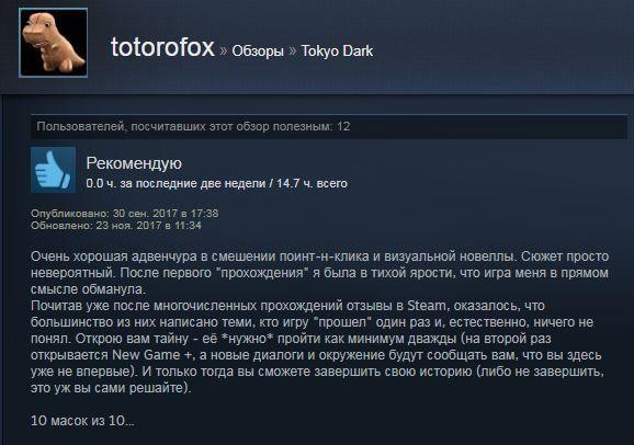 - Большинство диалогов и действий в Tokyo Dark будут влиять на дальнейшее развитие сюжетной линии.
