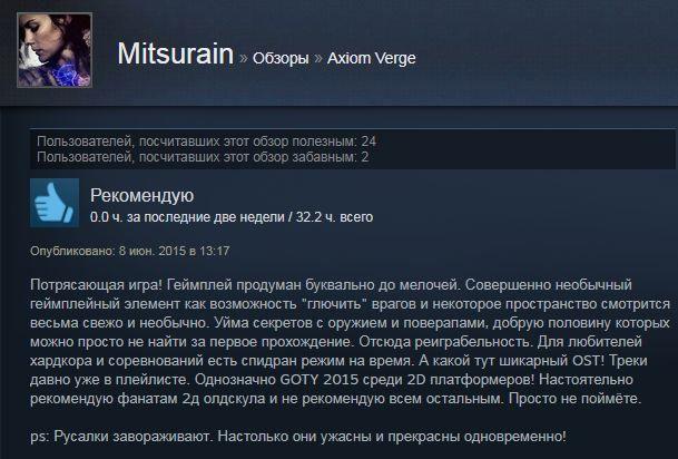 Axiom Verge расскажет таинственную историю ученого, который после необычного эксперимента попадает то ли в другую вселенную, то ли в имитацию реальности то ли... Это платформер в лучших традициях, где будет сложно, интересно и захватывающе, а огромные боссы каждый раз будут удивлять.