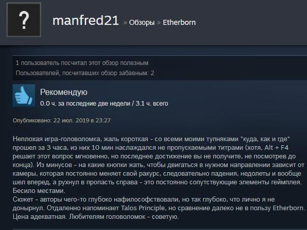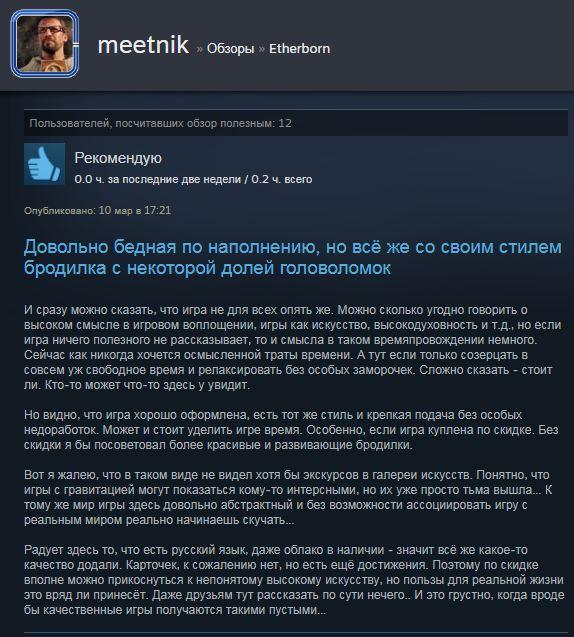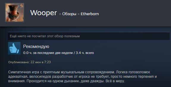 Атмосферная головоломка-платформер, погружающая пользователей в удивительный мир ярких красок, где вы выступите роли молчаливого существа и отправитесь в увлекательное путешествие. Особенность мира Etherborn в том, что здесь законы физики работают не совсем корректно. Сюжет начинается с момента, как вы услышали неизвестный голос, в результате чего будете следовать за ним и придерживаться его указаниям. Суть игрового процесса сводится к поиску источника голоса, но для этого нужно пройти многочисленные преграды органического мира.