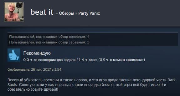 Развлекательный платформер Party Panic, открывающий доступ к самым разным игровым режимам с целью хорошего времяпровождения в компании друзей. Действия игры предлагают принять участие в мини-играх с забавными, но опасными задачами. Присутствует доля черного юмора, что требует особой осторожности от игроков. Для достижения победы нужно оставить все страхи позади и пользоваться всеми доступными возможностями.