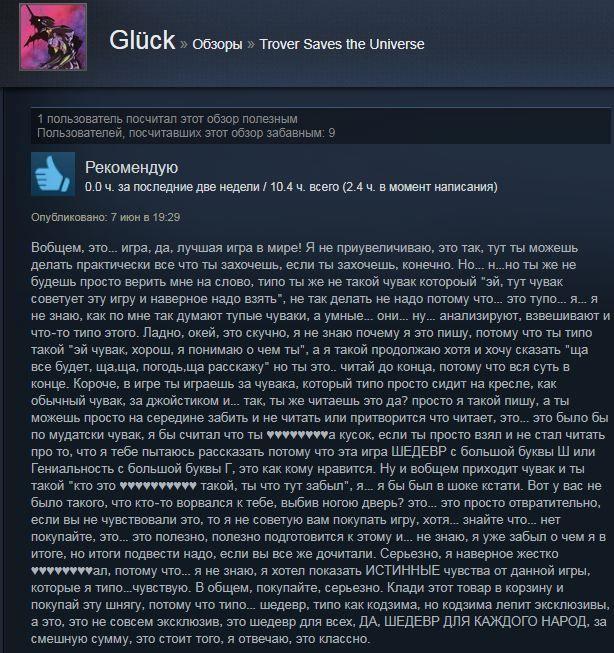 - Trover Saves The Universe отличается наличием неплохого юмора, с его помощью главный герой будет подшучивать над вами и порой шутки будут весьма обидными.