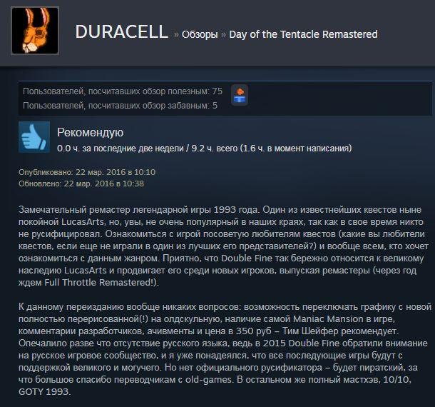 Отзывы об игре Day of the Tentacle Remastered: