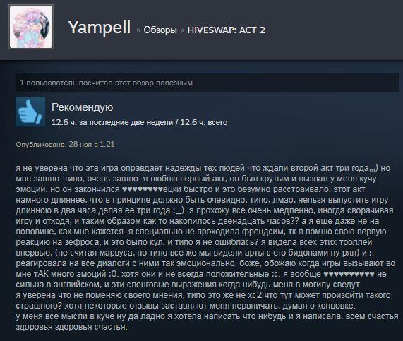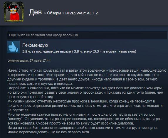 Вторая часть приключенческой истории о Джои, находящейся на планете Альтерния. В HIVESWAP: ACT 2 игроки познакомятся с десятками новых персонажей, столкнуться с новыми вызовами, головоломками и глубоко погрузятся в местную культуру. Двухмерный анимированные уровни и многочисленные диалоги отлично вписываются в игровую концепцию проекта.
