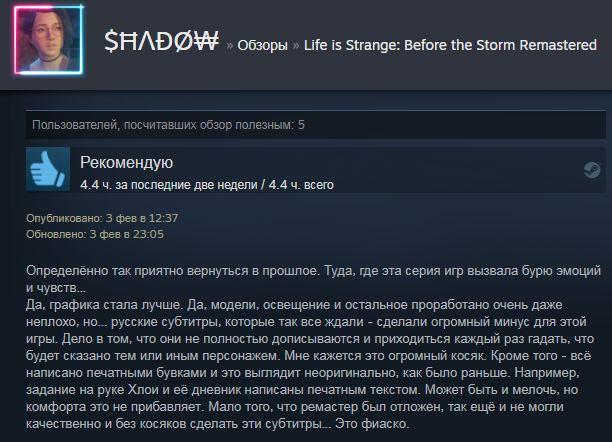 Life is Strange: Before the Storm Remastered – продолжение нашумевшей визуальной истории, во главе которой Хлоя Прайс. Сюжет поведает о событиях 3-хлетнейдавности, до истории первой части. Когда умирает отец Хлои, подруга Макс уезжает в другой город, а героиня впадает в жесткую депрессию. Написанные, но не отправленные письма для подруги немного успокаивают, но тяжесть остается. В один момент появляется Рейчел – новая подруга, открывшая вход в новый мир.