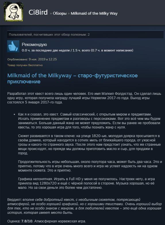 Отзывы об игре Milkmaid of the Milky Way: