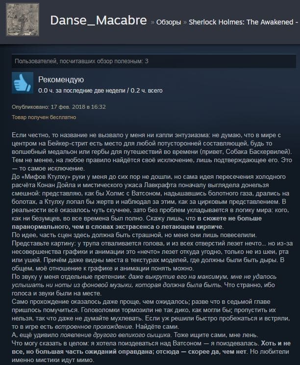 Отзывы об игре Sherlock Holmes: The Awakened - Remastered Edition: