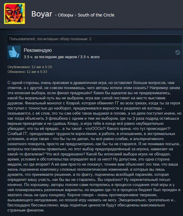 South of the Circle – кинематографическое приключение, выполненное в мультяшном стиле, где ключевое место в истории заняли двое влюбленных, профессоры, втянутые в политическую авантюру. Полет в Антарктиду для выполнения секретного задания заканчивается крушением самолета, в результате чего главному герою предстоит пройти ряд испытаний, уготованных погодными условиями. Помимо этого, придется разобраться со своими воспоминаниями и заново пережить прошлое.