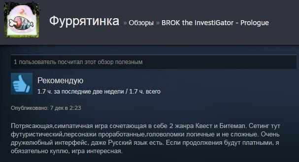 BROK the InvestiGator – приключенческий игровой проект, предлагающий выступить в роли детектива, Брока. Игровой процесс перенесет в футуристичную вселенную, где вместо людей живут животные. Самые привилегированные граждане проживают под куполом, защищающим их от загрязнений. Все остальные просто выживают. Главный герой бывший боксер, что позволяет ему не только расследовать дела, но и отбиваться от опасностей.