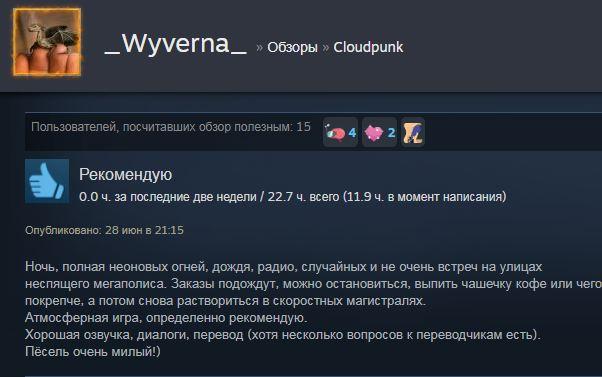 РПГ-экшен, события которого происходят в дождливом мегаполисе в далеком будущем. В CLOUDPUNK игроки будут управлять героем по имени Рания, которая заходит на первую ночную смену в одной из служб доставок, работающей не совсем легально. Передвигаться нужно на транспортном средстве, напоминающем автомобиль, но передвигающемся по воздуху. В городе, выполненном в стиле киберпанк, вы встретитесь с самыми разными персонажами и представителями ИИ.