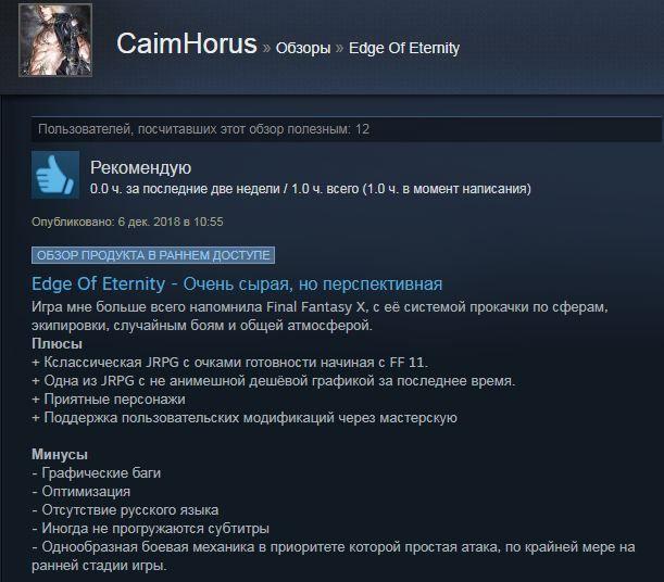 Игровой проект, являющийся типичным представителем жанра РПГ с увлекательной сюжетной историей со множественными поворотными событиями и испытаниями. История Edge of Eternity рассказывает о многолетнем благополучии, в котором проживали жители трех городов, питающих энергию из специальных кристаллов. Все это нарушилось, когда сторонники зла решили прибрать источники энергии к своим рукам, что привело к уничтожению одного города.