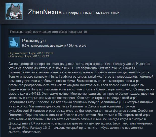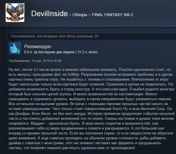 Final Fantasy XIII-2 - это продолжение предыдущей части культовой серии, открывающее новые детали сюжета и рассказывающее еще одну увлекательную историю о мире Кокона. Сможете ли вы противостоять могущественному правительству под названием Санктум? Великолепное продолжение популярной серии, всем поклонникам jRPG строго рекомендуется к ознакомлению.